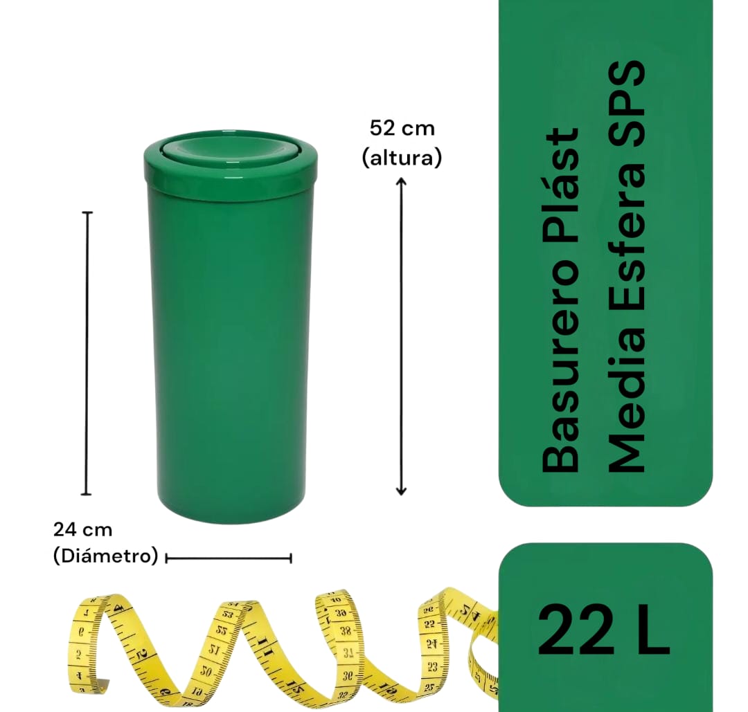 - Diseño: Tapa media esfera giratoria que evita el contacto directo con los residuos.