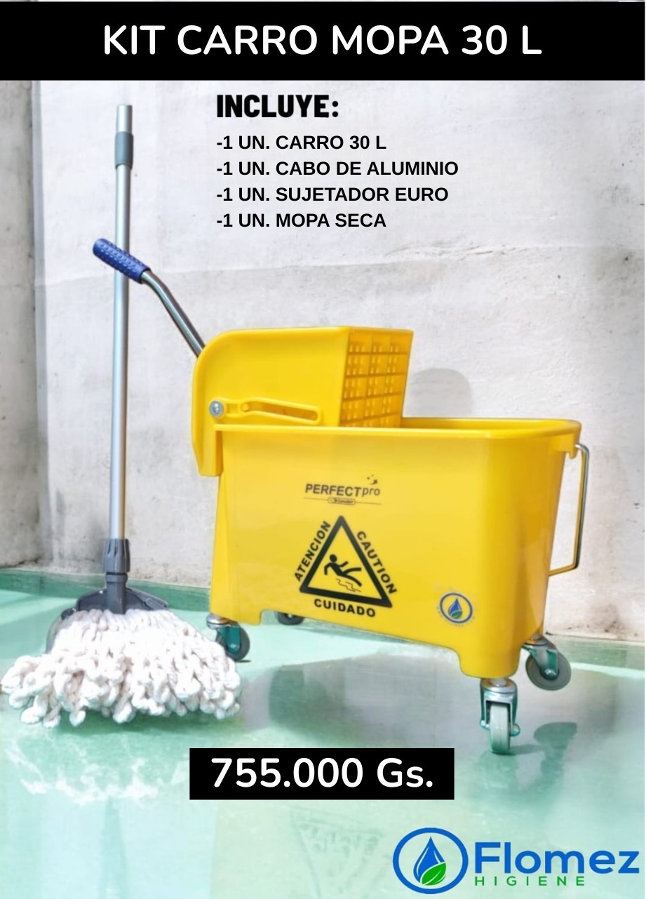 - Incluye carro, cabo de aluminio, sujetador euro y mopa seca.