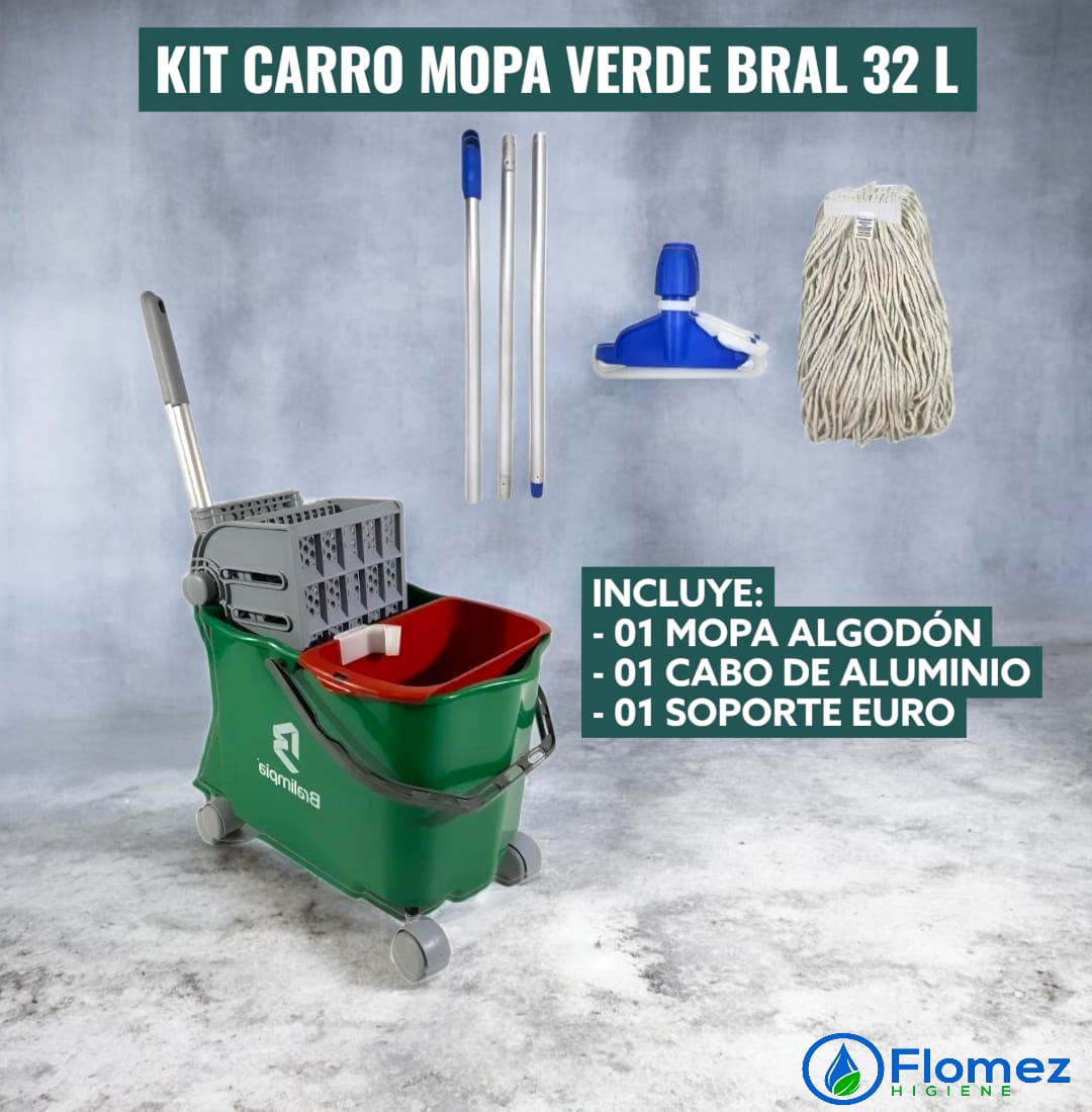 - Componentes incluidos: Incluye una mopa de algodón, un cabo de aluminio y un soporte euro.