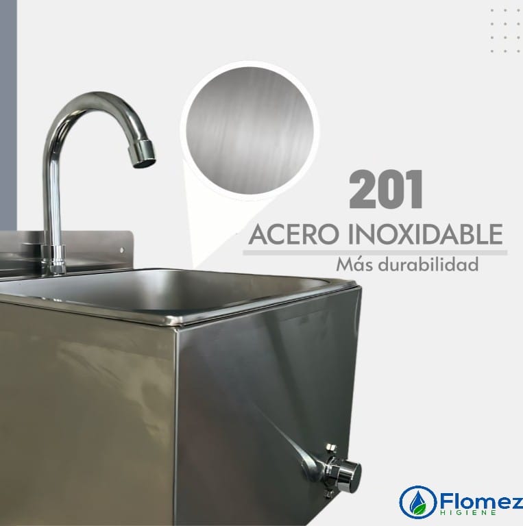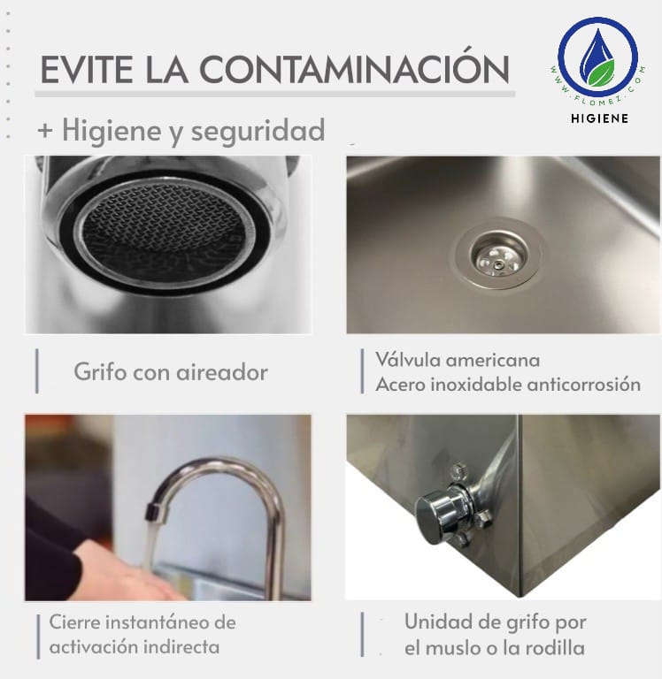 Funcionamiento: Incluye grifo y válvula, y está diseñado para accionarse con la rodilla para evitar contaminación cruzada.