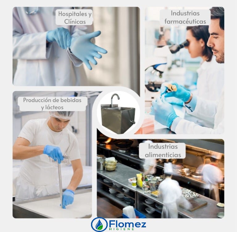- Industrias alimenticias: Lavabos para cocinas industriales y áreas de manipulación de alimentos. Dimensiones: