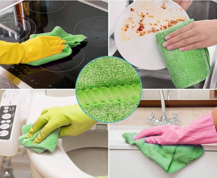 • Está hecho de microfibra, que es segura y no raya para todas las superficies, como vidrio, madera, acero inoxidable y granito.