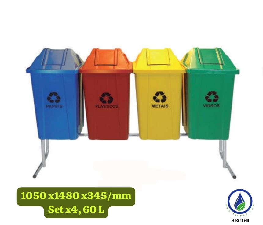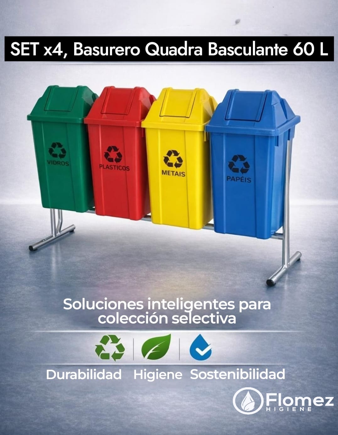 Viene con pegatinas y 4 ganchos (cada uno) para fijar la bolsa de basura.